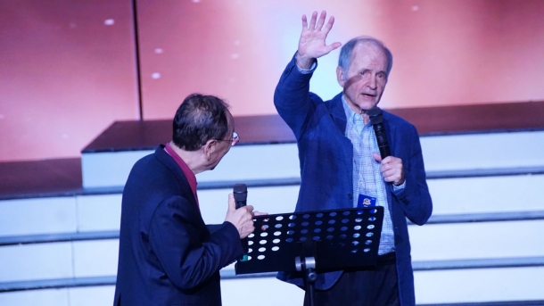 부시 박사가 "안녕하십니까"라는 정겨운 한국어 인사로 입을 열자 객석에서는 즉각 따뜻한 웃음이 터져 나왔다. 김남수 목사의 재치 있고 생생한 통역이 더해지면서, 집회는 시종일관 화기애애한 분위기 속에서 진행됐다.